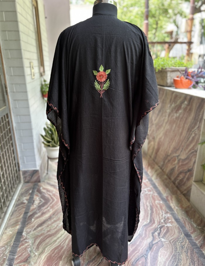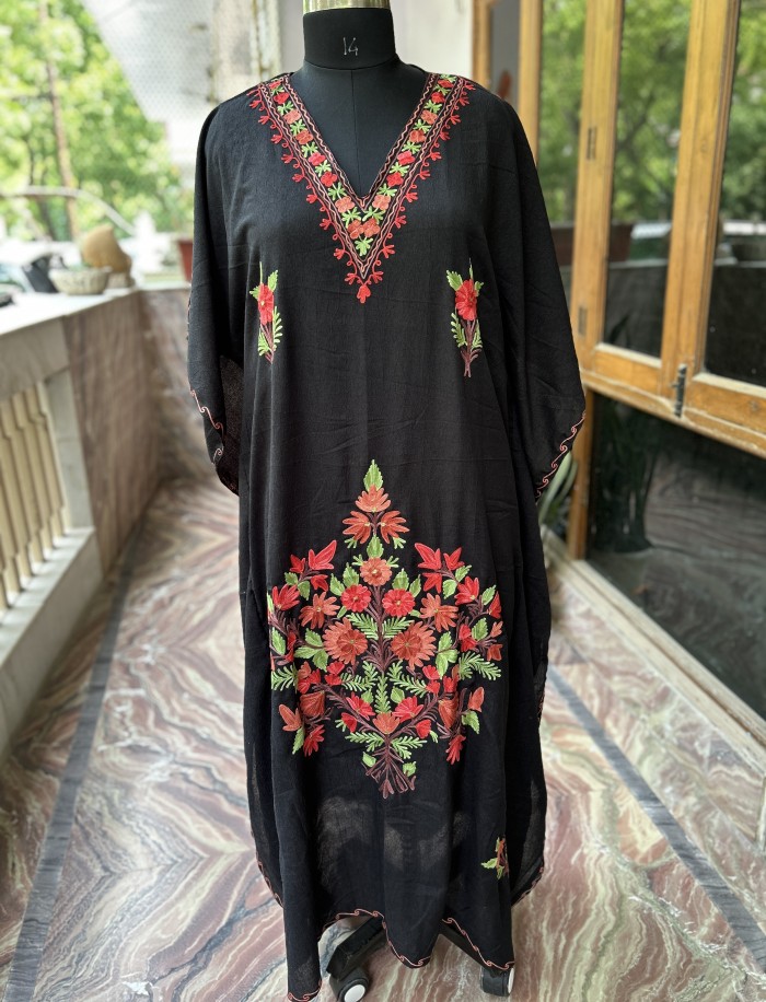 Kashmiri Aari Work Black Kaftan with Floral Embroidery