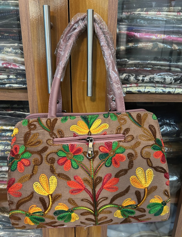 | Design : | Detailed floral crewel-style embroidery on the main body |